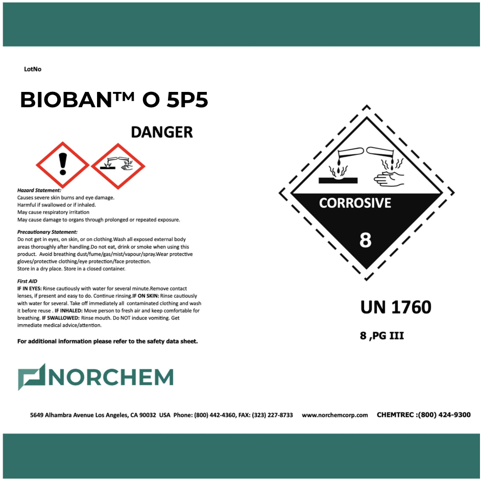BIOBAN™ O 5P5 is a broad-spectrum liquid fungicide based on OIT chemistry, designed for use in a wide range of applications. Available in 30 gal drum only.